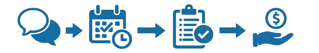 - 日程調整:ヒアリングや必要に応じて現地調査をさせていただきます。